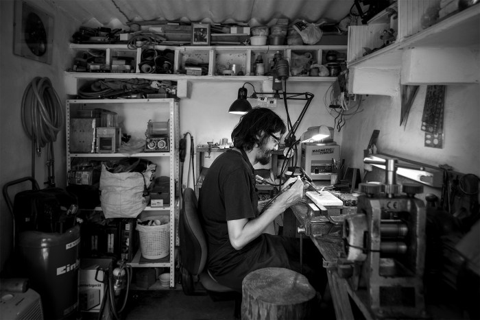 Este pequeño taller artesano se caracteriza por su modo tradicional de hacer joyería; desde la adquisición del metal en estado puro, hasta su posterior aleación, laminado y trefilado; apostando por un trabajo puramente artesanal y opuesto completamente a la producción en serie e industrial.