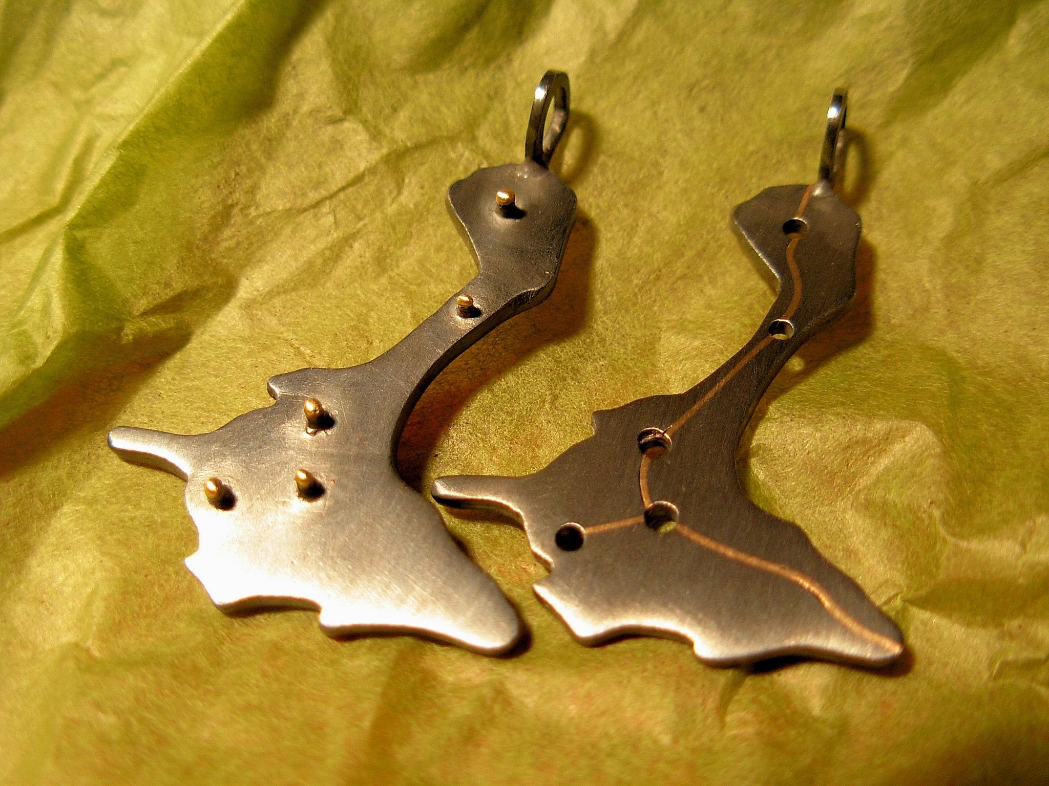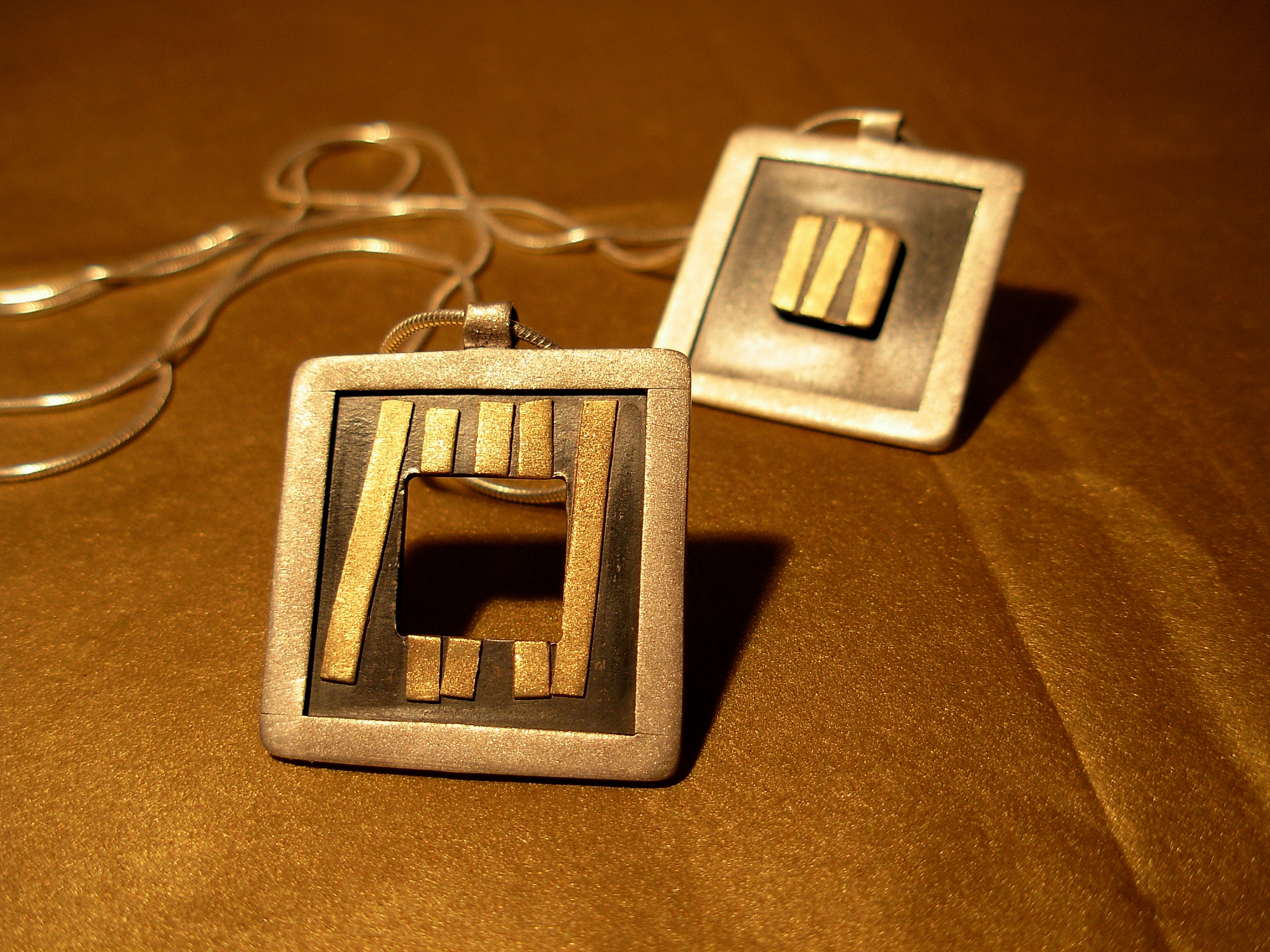 Piezas hechas en plata y oro, que simbolizan la unión de dos partes que forman un todo.
